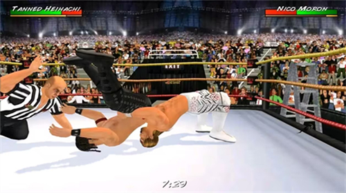 摔跤革命3D竞技场热血激战将美式职业摔跤的狂野魅力浓缩于移动端,通过次世代3D渲染技术呈现擂台碰撞的视觉冲击。游戏深度还原WWE经典赛事机制,玩家可自由组建包含重量级拳手、高飞型选手等不同风格的格斗家阵容,在聚光灯下展开充满策略与技巧的巅峰对决。